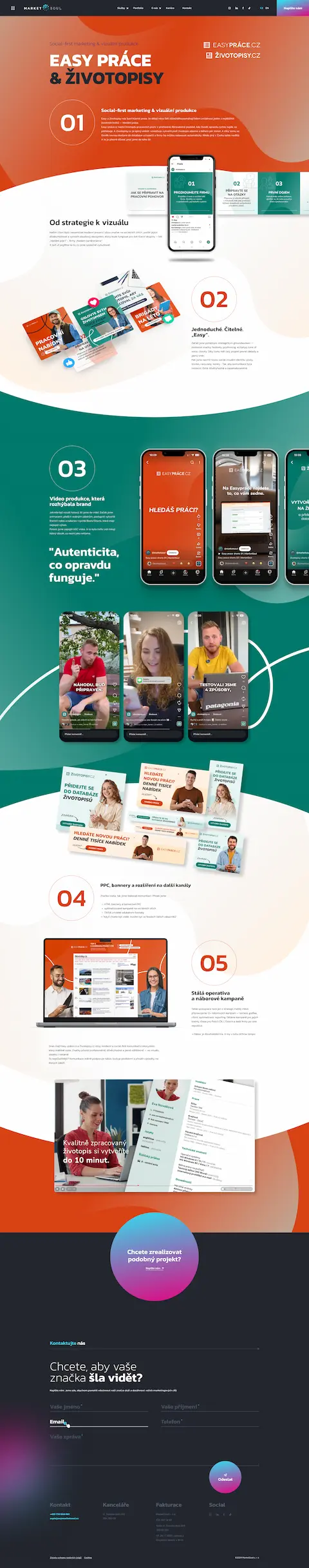 V MarketSoul věříme, že každá značka má svůj příběh, který stojí za to vyprávět. Naším posláním je dát mu směr, duši a výsledky. Ať už potřebujete web nebo e-shop, PPC, správu sociálních sítí, SEO, obsah, logo identitu, grafiku, focení či video, můžete se na nás spolehnout. Na facilitovaných workshopech s vámi vytvoříme komunikační strategii, která bude rezonovat. A navíc vás naučíme efektivně používat AI, tvořit vlastní agenty a automatizovat procesy, které šetří čas, peníze i starosti.